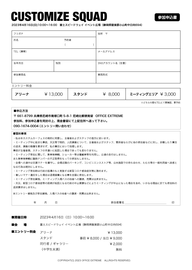 (同乗者、ギャラリーは当日受付にてお支払いください)